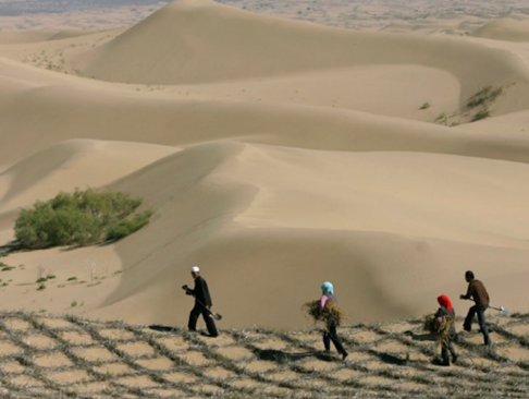 По словам специалистов, работы на финальном отрезке "зеленого шарфа" длиной 285 км планируют завершить уже в этом году. Одним из эффективных методов борьбы с пустыней стало обустройство квадратных ячеек из пучков соломы. Они останавливают движение песка и в дальнейшем способствуют росту деревьев и трав.
