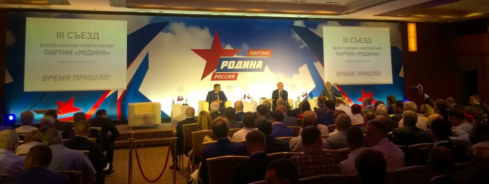 В субботу, 2 июля 2016 года, в Москве проходит III Съезд Всероссийской политической партии "РОДИНА".