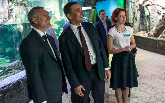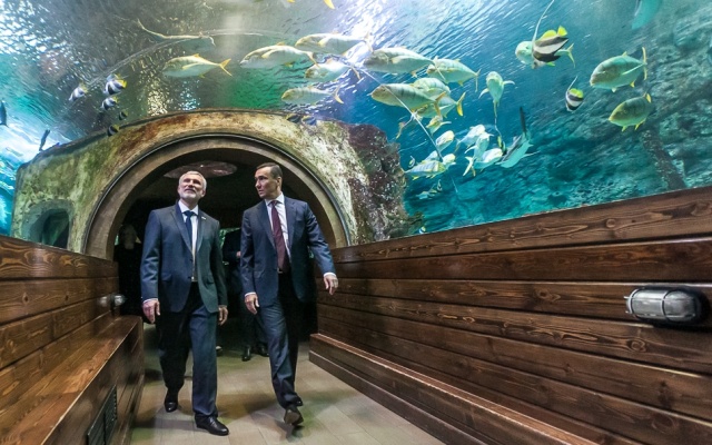 Во время осмотра ТРЦ Евгений Николаевич Хамин особое внимание уделил гордости Воронежской области - океанариуму.