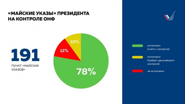 "Мы подведем итоги общественного мониторинга качества исполнения «майских указов» от 2012 г., который ведет ОНФ. Наша позиция остается неизменной: указы и поручения президента должны привести к реальным позитивным изменениям на местах – во дворах, поликлиниках, школах, в экологической ситуации. Каждый должен почувствовать эти перемены на себе. Активисты ОНФ постоянно мониторят ситуацию, общаются с людьми и проверяют, произошли изменения только в документах чиновников или же качество жизни граждан в действительности растет. Мы проводим большую работу по анализу этих результатов, передаем наработки в федеральные министерства, представителям региональной и муниципальной власти, держим проблемные вопросы на контроле до полного их разрешения. ОНФ сообщает в контрольное управление президента о том, соответствует ли ситуация в городах и селах информации, которая содержится в отчетах кабмина", – сообщила ранее сопредседатель Центрального штаба ОНФ, вице-спикер Госдумы Ольга Тимофеева.