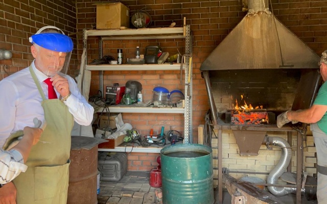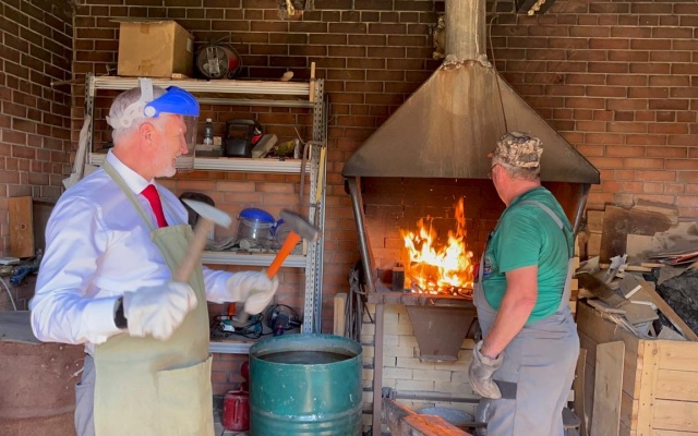Сначала Алексею Журавлеву показали настоящую, действующую кузницу, которую соорудили на президентский грант. Пользуется огромной популярностью на экскурсиях. Депутат попробовал себя в роли кузнеца.