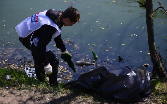Общими усилиями на берегу пруда установили новую лавочку и информационный стенд; сам берег укрепили в нескольких особо опасных местах; собрали и вывезли почти четыре тонны мусора.