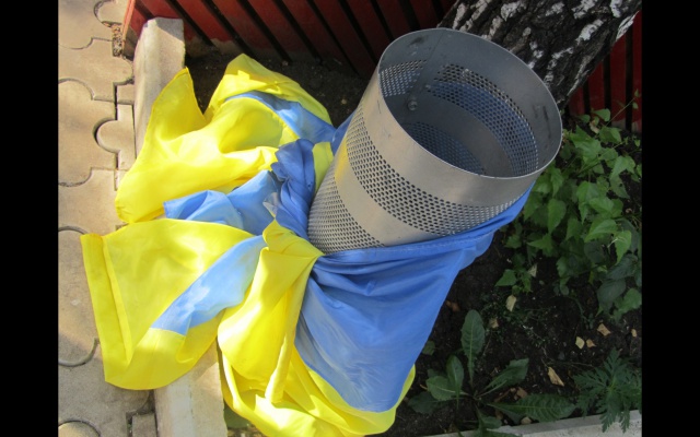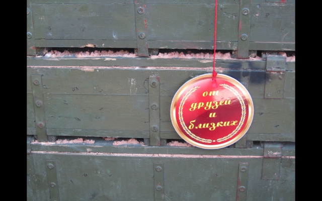 Тему специфического юмора продолжает дизайнерское оформление нехитрого быта с помощью украинской государственной символикой. Возле беседки - урна, повязанная флагом, в дощатом нужнике пол устелен таким же. На ящиках с боекомплектами - шутливые указатели, а также ритуальные таблички-послания.