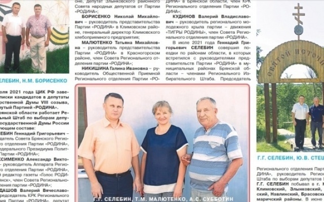 Свежий выпуск газеты можно читать по ссылке "Голос РОДИНЫ. Брянск"