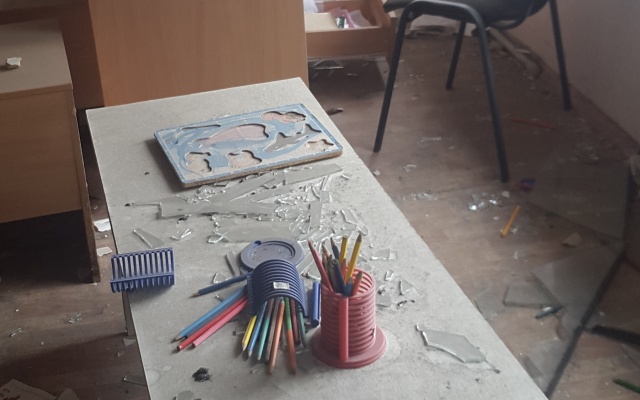 Мы выходим из виллы и видим рядом детский сад. Бывший, конечно... Кажется, что детский смех здесь ещё слышен. Площадка искорежена снарядами, комнаты со сдвинутыми в угол маленькими столами сплошь усыпаны осколками, кусками штукатурки, сломанными игрушками, красками, карандашами и детскими тоненькими книжками. О подробностях этого обстрела страшно думать...