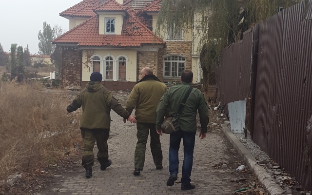 Следуем дальше. В качестве проводников берем ребят-ополченцев, несущих в Спартаке круглосуточную боевую вахту. Подходим к вилле "Каппуччино", резиденции бывшего губернатора Донецкой области. Сейчас сюда можно зайти беспрепятственно, чтобы полюбоваться "остатками былой роскоши". Осколки великолепной люстры перемешаны с кусками дубовых панелей, мраморной крошкой и осколками снарядов, по разбитым лестничным пролетам гуляет сквозняк, треплющий шторы на высоких окнах без стекол. Впрочем, наш интерес к жилищу губернатора "эпохи украинской демократии" на Донбассе отнюдь не культурный или туристический. Любопытство вызвано лишь тем, что до украинских позиций здесь рукой подать, а, значит, их можно и сфотографировать сквозь амбразуру в стене.