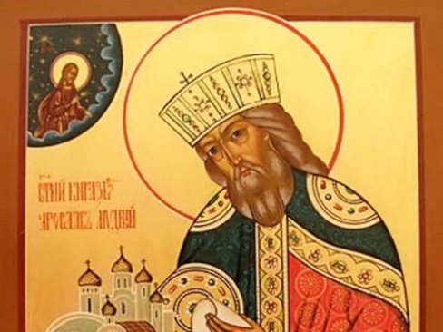 Князь Киевский Ярослав Владимирович (Мудрый), во святом крещении Георгий, родился в 978 г. и был сыном святого равноапостольного великого князя Владимира и полоцкой княжны Рогнеды. Еще при своей жизни произведя первый раздел земель между сыновьями, князь Владимир посадил Ярослава в Ростове.