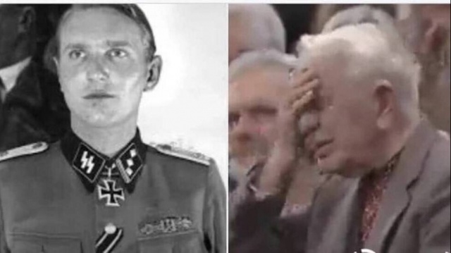 "И это в самом деле запредельный цинизм - рукоплескать эсэсовцу, идейному нацисту (вот он на фото в молодости со всеми регалиями), который гордился своей службой в дивизии "Галичина" и считал период, когда он безнаказанно убивал русских, евреев и поляков, лучшим в своей жизни", - заявил Журавлев.