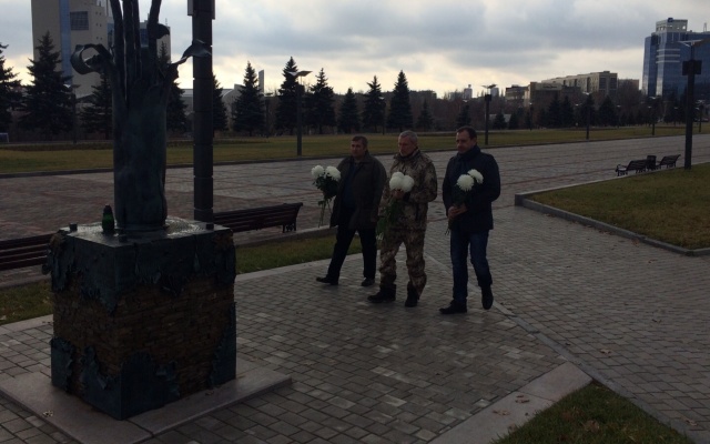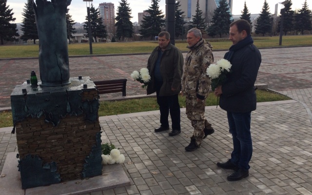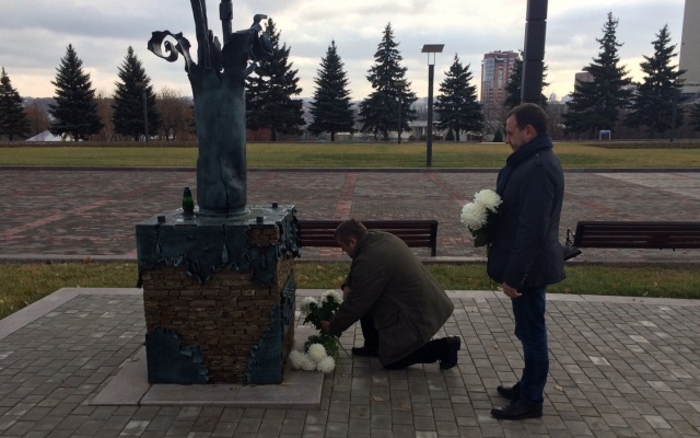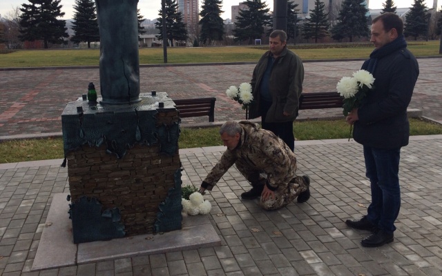 Сегодня, 15 ноября 2015 года, председатель партии "РОДИНА", депутат Госдумы РФ Алексей Журавлёв, который находится с рабочим визитом в Донецкой Народной Республике, возложил цветы к памятнику погибшим гражданам ДНР в Донецке.