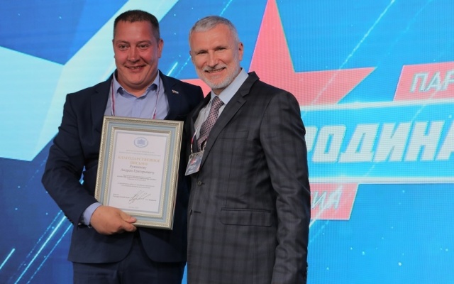 За активное участие в общественно-политической жизни партии "РОДИНА" благодарственное письмо председатель партии Алексей Журавлев вручил руководителю реготделения в Ленинградской области Валерию Шинкаренко.