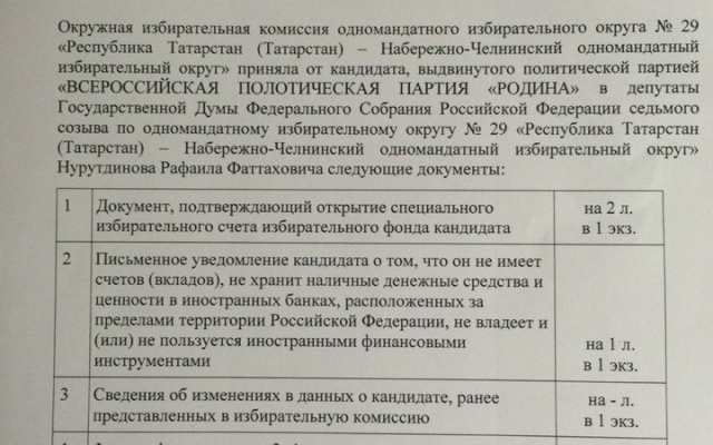 Рафаил Нурутдинов, кандидат в депутаты Государственной Думы от партии «Родина» по Набережно-Челнинскому одномандатному избирательному округу № 29 21 июля 2016 г. сдал документы в Окружную избирательную комиссию.