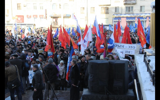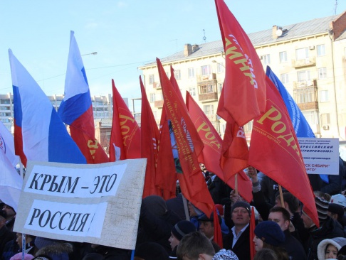 В Омске прошли мероприятия, посвященные годовщине присоединения Крыма к России, точнее, как говорили местные «Родинцы» на митинге – возвращение полуострова в родную гавань.