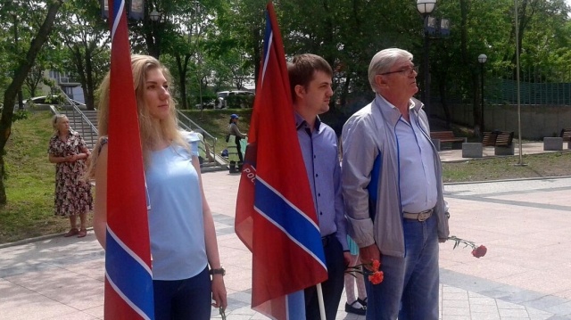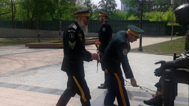 Возложение цветов к памятнику возле Дома Молодежи (г. Владивосток)