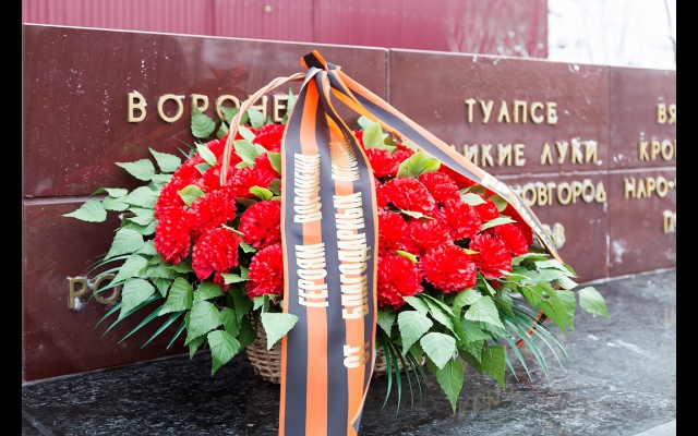 Партийцы возложили цветы у плиты Воронежа, а затем минутой молчания почтили память защитников и жителей города.