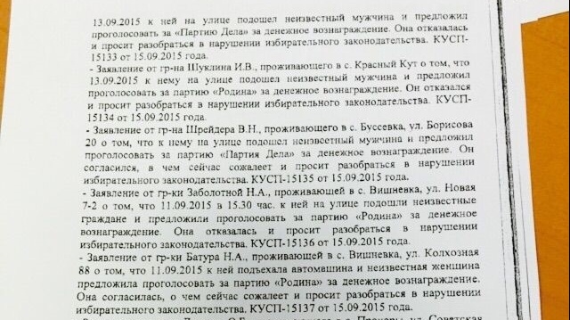 В данный момент в Спасском районе идёт пересчёт голосов на 25% участков с целью аннулировать результаты выборов. В Пожарском районе уже отменили результаты выборов в нескольких УИКах, где партия "РОДИНА" набрала больше всего голосов: по участку №2508 села Емельяновка Пожарского района (78%) и ближайшие села, где количество голосов превысило отметку в 20%. В результате этих действий, в итоговом протоколе на выборах депутатов Думы Пожарского района партия "РОДИНА" без учета волеизъявления жителей указанных участков получила 4,9% и, таким образом, не преодолела 5% барьер.