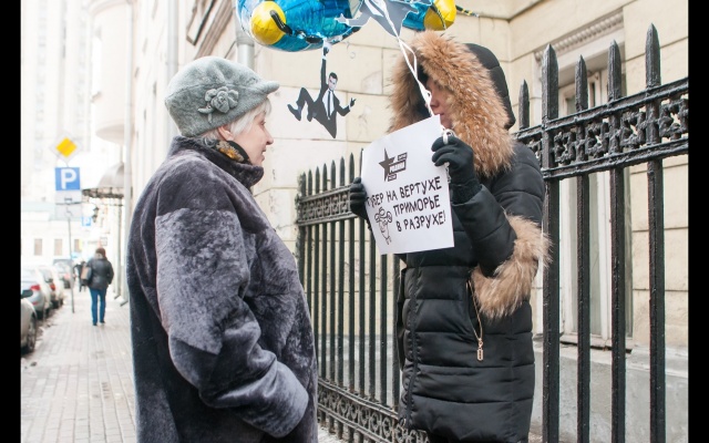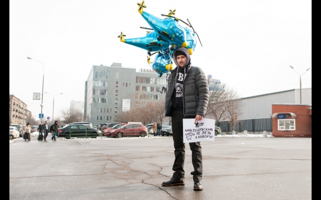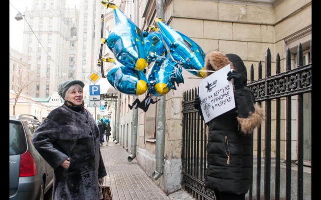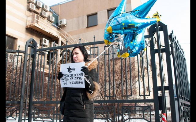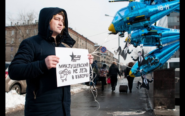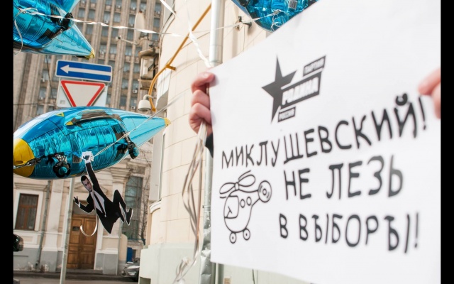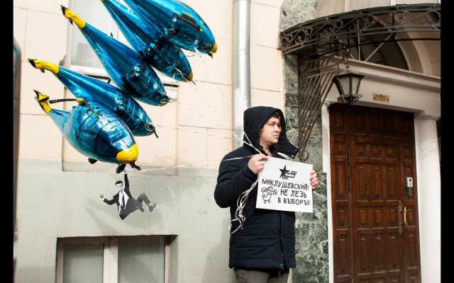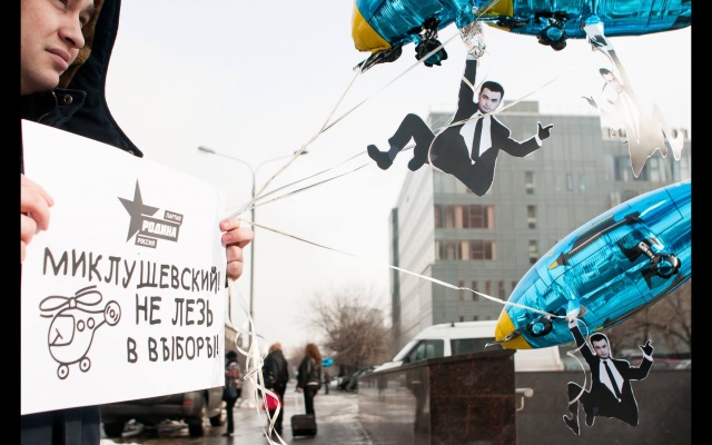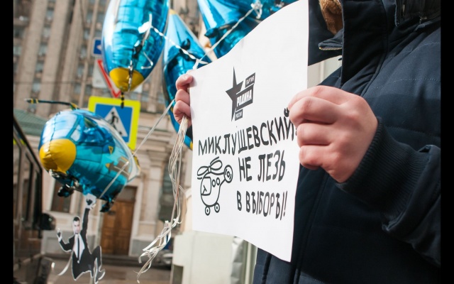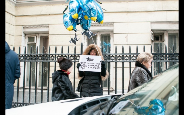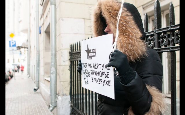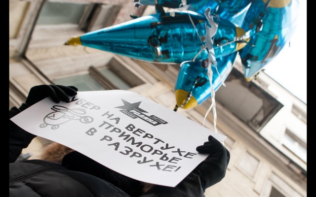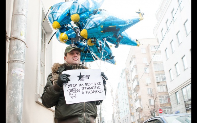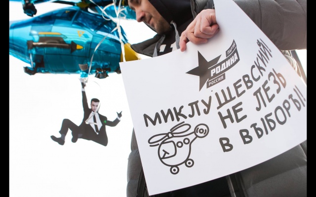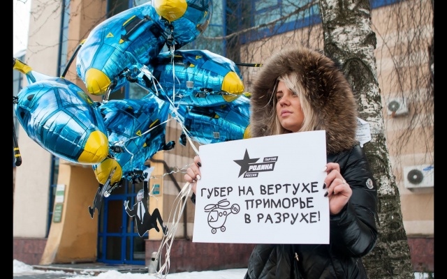 "Миклушевский, хватит летать, пора садиться!" Под таким лозунгом 24 февраля в Москве партия "Родина" провела акцию протеста у представительства Приморского края.