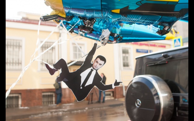 Родинцы запустили в воздух вертолёты с изображениями Владимира Миклушевского как напоминание о нашумевших вертолётных вояжах губернатора, по которым прокуратура уже несколько месяцев ведет разбирательство.