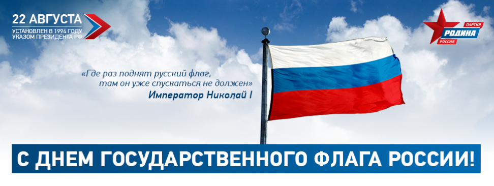 Партия "РОДИНА" поздравляет всех граждан России с Днём Государственного флага Российской Федерации.