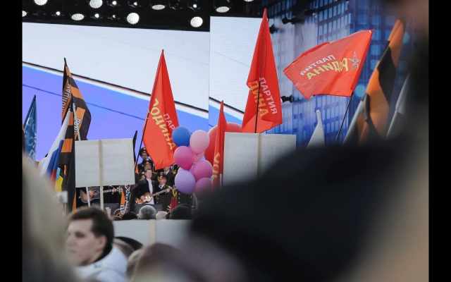 В финале акции со сцены к собравшимся обратился президент России Владимир Путин. "Ровно год назад вот в эти дни, народ российский продемонстрировал удивительную собранность, удивительный патриотизм", - отметил президент.