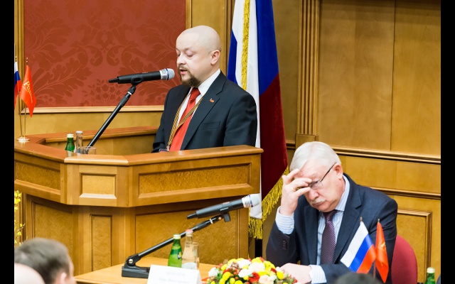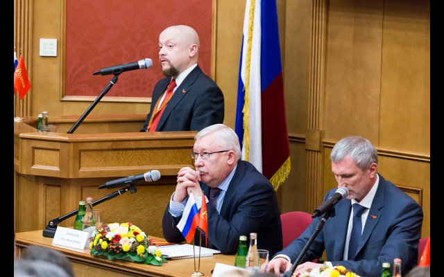 Открыл официальную часть заседания Председатель партии "РОДИНА" Алексей Журавлёв. Он напомнил собравшимся о том, что партия имеет за плечами большую историю, и в течение всего этого времени она сохраняла приверженность одним и тем же принципам.