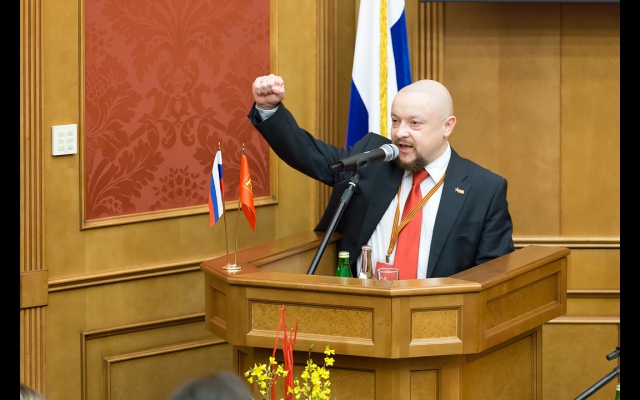 После Журавлева слово взял идеолог партии Фёдор Бирюков, который обозначил главное зло, которому сейчас противостоит весь русский мир – либерал-фашизм.