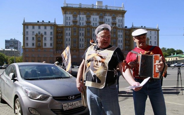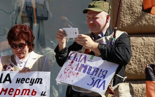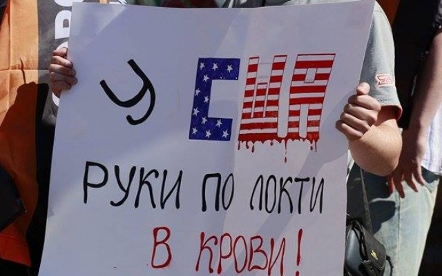 Участники массового пикета протестовали против вмешательства США в дела суверенных стран, геноцида русских на Украине, бомбардировок Сирии, поддержки ИГИЛ.