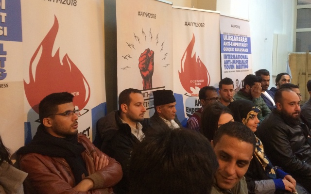 Международный антиимпериалистический молодежный конгресс проходит под эгидой Молодежного союза Турции (TGB) в Стамбуле и Анкаре 17-23 марта. На форум приехали 1200 человек из 25 стран Европы, Азии, Южной Америки и Северной Африки. Слоган мероприятия: "Против агрессии, терроризма и бесперспективности".