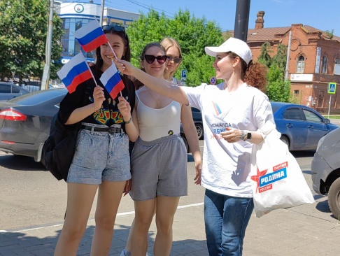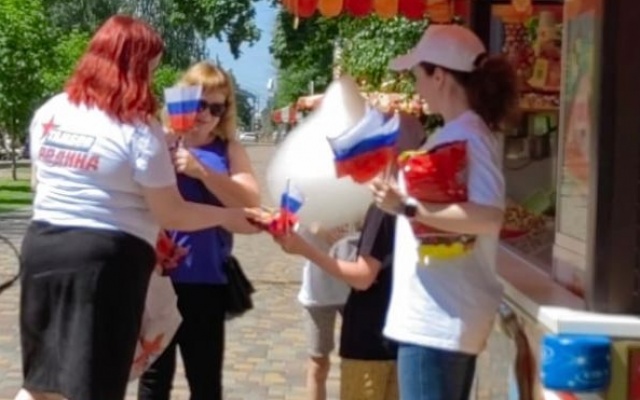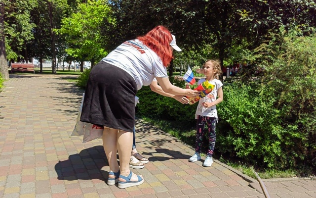 Сегодня на улицах города сотрудники Приемной депутата Государственной Думы Алексея Журавлева поздравили жителей с приближающемся праздником и вручили маленьким горожанам сладкие подарки, а также один из символов нашего государства – флаг Российской Федерации.
