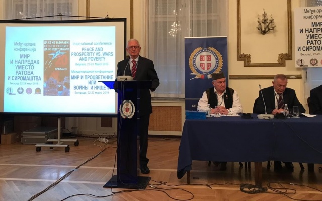 "Открыл Конференцию экс-министр иностранных дел Союзной Республики Югославия, председатель Белградского форума за мир равноправных Живодин Йованович", - написал в Facebook Алексей Журавлев.