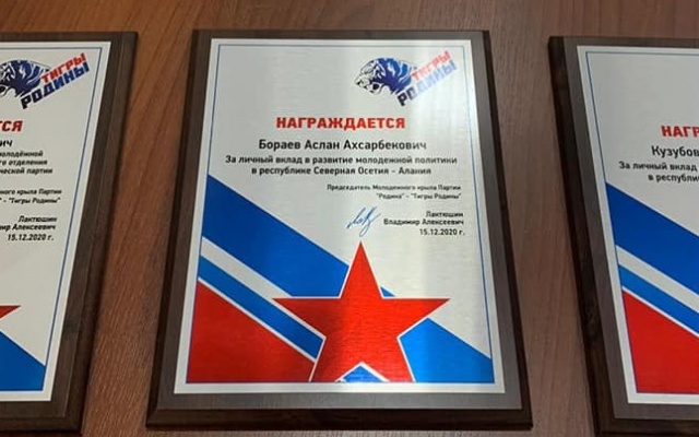 Лактюшин отдельно отметил тот факт, что Северо-Осетинское отделение "ТИГРОВ РОДИНЫ" по всем показателям (количество членов, активность, инициативность, акции) стало лучшим в России. И это заслуга непосредственно руководителя реготделения организации – Лео Бугулова и его активных соратников. Они удостоены памятных наград за большой личный вклад в развитие молодежной политики в России и организацию лучшего отделения Молодежного крыла Всероссийской политической партии "РОДИНА".
