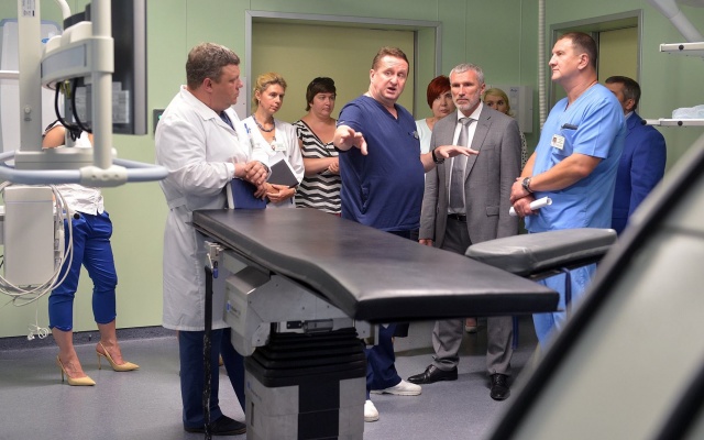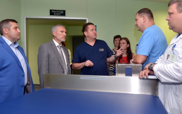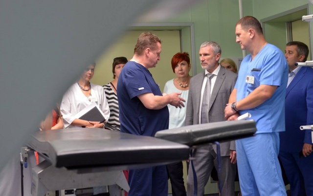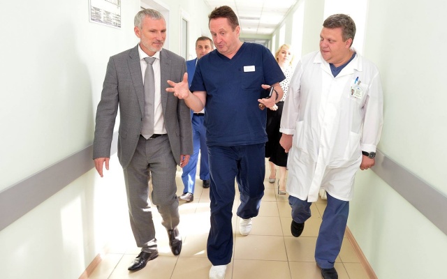Алексей Журавлев: "Здесь новейшее оборудование, огромная программа существует. Все это развивается и работает. Это позволяет нашим жителям уверенно смотреть в будущее. Конечно, мы это будем поддерживать и не дадим ничего сократить. Даже больше того — как бы ни было сложно с экономикой, медицину трогать нельзя. Можно трогать только в одном случае — увеличивая дотации на медицину".