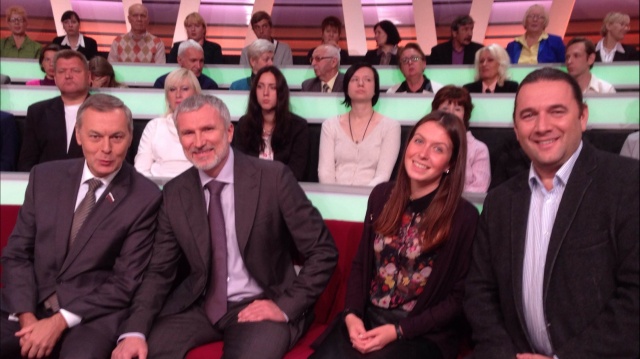Алексей Журавлев в студии программы "Место встречи" на канале НТВ с депутатами Госдумы Максимом Шингаркиным и Александром Тарнавским.