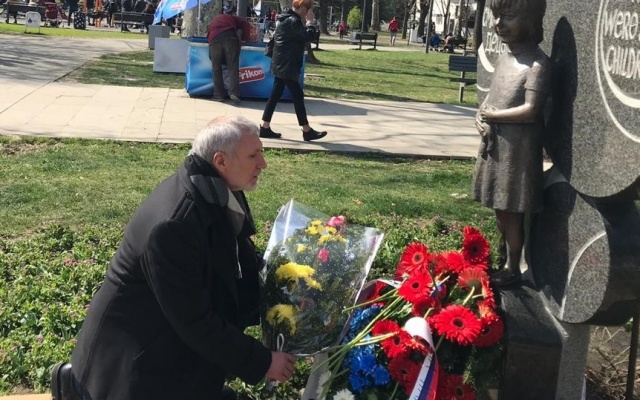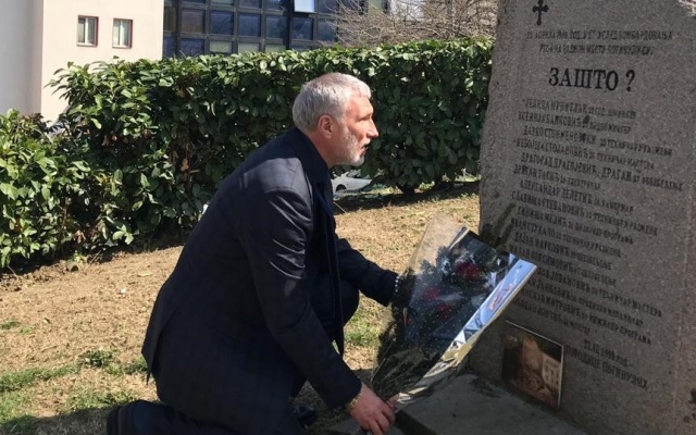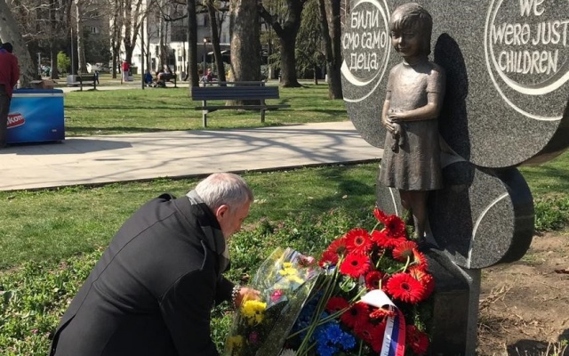 "Монумент "Зачем?" воздвигнут в память погибших работников при налете на здание Телевидения и радио Сербии. Но особенно тяжело на сердце у памятника "Мы были просто детьми" - в память погибшим сербским детям. Оба монумента стоят в белградском парке Ташмайдан", - написал лидер партии "РОДИНА" на своей странице в  Facebook.
