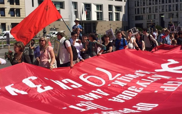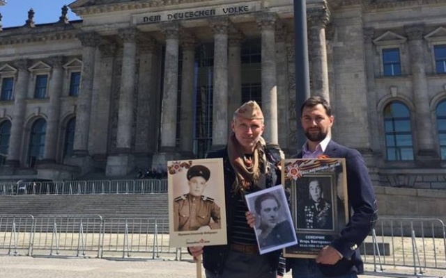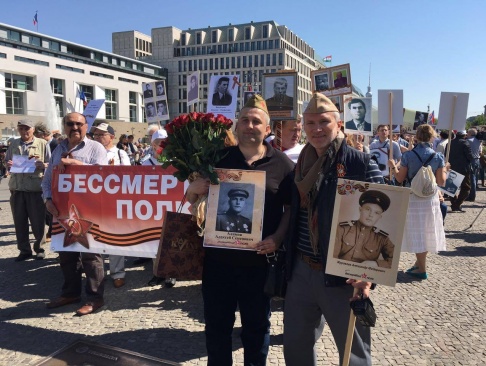 В берлинской акции 9 мая приняли участие председатель партии "РОДИНА", депутат Госдумы Алексей Журавлёв; член Бюро Президиума партии, руководитель Волгоградского регионального отделения "РОДИНЫ" и сопредседатель Социально-патриотического клуба "СТАЛИНГРАД" Алексей Рылеев; директор СПК "СТАЛИНГРАД", руководитель партийного интернет-проекта "Русский мир" Николай Ханин; лидер движения "Родина – Евразийский союз" (Молдавия) Игорь Тулянцев.