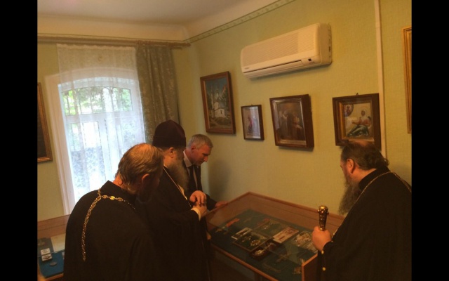 "Я передал в дар Митрополиту скульптурное изображение Святого равноапостольного великого князя Владимира. Осмотрели уникальную экспозицию музея владыки Симона", - написал Журавлёв на своей странице в Facebook.