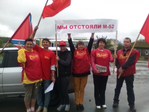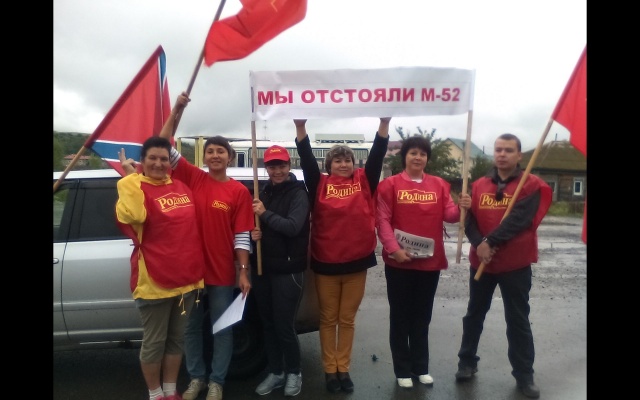 4 сентября 2015 года федеральное дорожное агентство Министерства транспорта РФ провело совещание по рассмотрению основных проектных решений по строительству трассы М-52 в обход села Маймы. На совещании по приглашению ведомства присутствовали руководитель регионального отделения партии "РОДИНА" в Республике Алтай Мария Демина и представитель инициативной группы жителей с.Маймы, член Бюро партии "РОДИНА" Наталья Доронина, которые дали разъяснения о настроениях населения с.Маймы. Посланники народа на совещании представили ряд документов, в том числе, резолюцию митинга от 08 июня 2015 года, ответ республиканской Прокуратуры о невозможности реконструкциЙ через с.Майма без принятия решения о внесении изменений в градостроительную документацию и необходимости проведения публичных слушаний по данному вопросу при обязательном учёте мнения населения. В том числе до федерального дорожного агентства была доведена проблема жителей с. Дубровка, связанная с проведенной реконструкцией трассы, в том числе было сказано, что вскоре жители села Дубровка при поддержке депутатов от партии "РОДИНА" в Майминском районе, поставят вопрос о строительстве надземного перехода в с.Дубровка за счёт средств федерального бюджета.