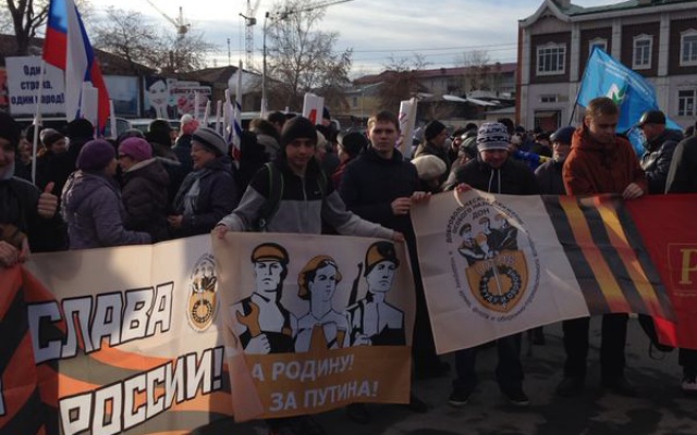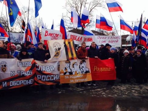 Мероприятие, в котором приняли участие десятки российских общественных и политических организаций, состоялось в поддержку воссоединения Крыма и Севастополя с Российской Федерацией.