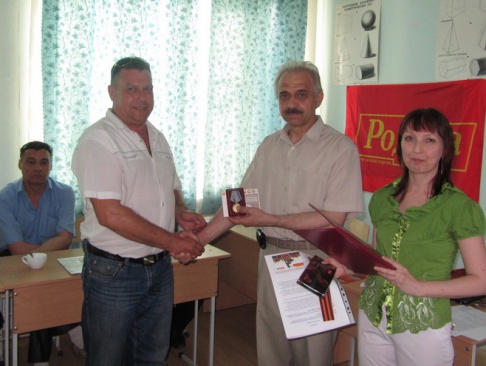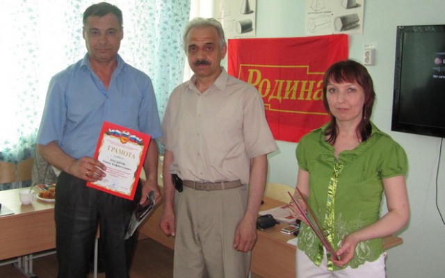 В торжественной обстановке участники военных действий Вальков В., Борисов К., Борисов В., Муртазин О., Шавшаеа В., Кошелев А., Заскалько Ю., Кладов О., Коротовских О., Насыров Р., были награждены памятными медалями, грамотами партии "РОДИНА" и одноименной общественной организации. С добрыми пожеланиями и словами приветствия выступили руководитель организации ветеранов Логинова Л.К., руководитель общественной организации "Дети защитников Отечества" и хор "Седина".