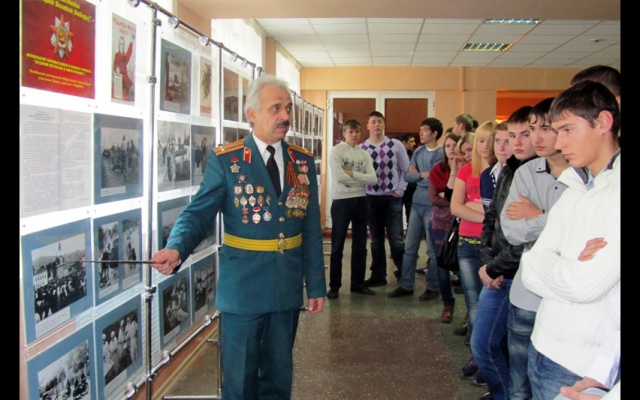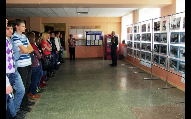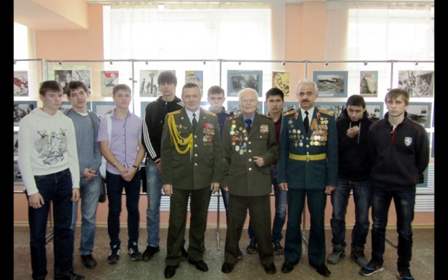 В заключении, ветераны открыли в холле техникума фотовыставку "История Великой Победы", рассказали о военных испытаниях, выпавших на долю миллионов наших граждан. Борис Кудрявцев поделился воспоминаниями о своих боевых товарищах, боровшихся с фашистами.