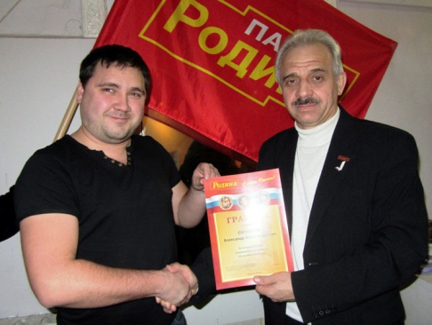 В заключении, Фёдор Юрин наградил грамотой за активное участие в выборах 2014 года представителя Калининского района города Челябинска Александра Солодкова.