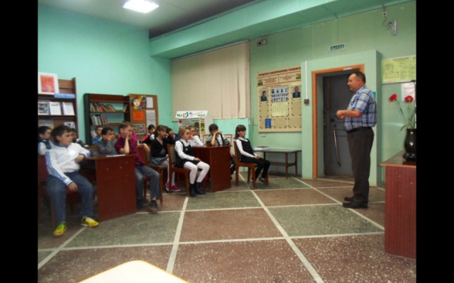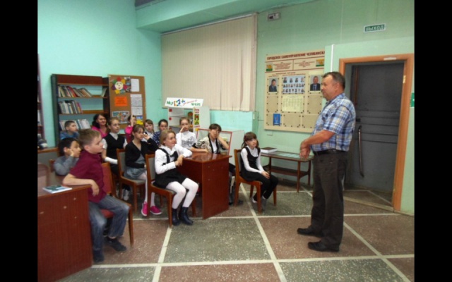 В Челябинской городской библиотеке №24 активисты регионального отделения партии "РОДИНА" Александр Кожейкин и Юрий Корнилов провели урок мужества для учеников 4-го "Б" класса школы №146.