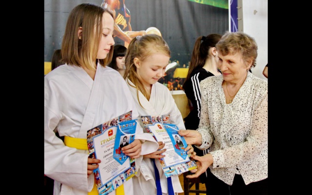 Медали и вымпелы юным каратистам вручала по традиции мама Героя России Евгения Родионова – Любовь Фёдоровна. Ей помогали Елена Яковлева - мать Героя России рядового Александра Яковлева и Светлана Кислова - вдова Героя России Сергея Кислова.