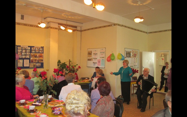 Перед гостями выступил творческий дуэт "Лейся песня", вместе с которым гости праздничной встречи пели песни своей молодости, состязались в частушках, танцевали.