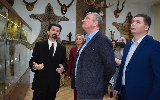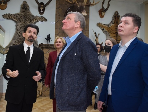 И это естественно и закономерно, что социальные проекты одного из ведущих вузов региона, находятся в сфере внимания руководства области и федерального центра. Экспозицию музея биофака торжественно открыли губернатор Кировской области Игорь Васильев и директор департамента государственной политики и регулирования в сфере охотничьего хозяйства министерства природных ресурсов и экологии России Андрей Филатов.