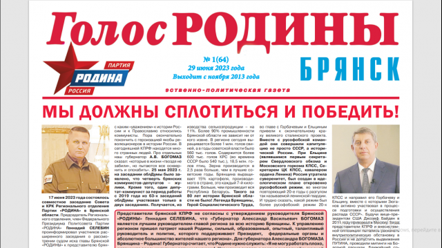 Советом Брянской "РОДИНЫ" утвержден Избирательный штаб по выборам в Брянский райсовет (А.В.МАКСИМЕНКО, Е.В.ВОЕВОДОВ, Д.М.ДАШКОВ, О.В.МАЛЬКИНА, Г.И.НИКИШИНА).