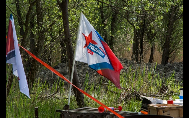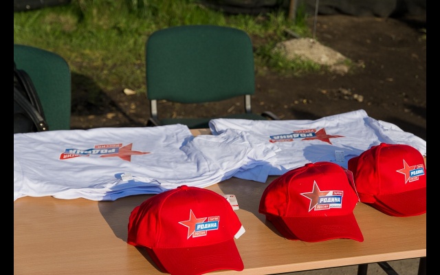 Команды по пять человек сначала боролись за флаг партии "РОДИНА". Команда-победитель стала обладателем кубка "Защитник Родины".