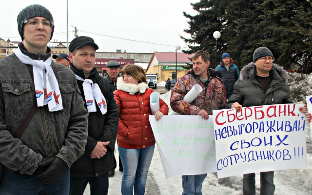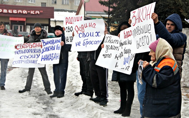 На митинг вышли около ста человек с лозунгами: "Мошенникам – бой!", "Сбербанк, не выгораживай своих сотрудников!", "Греф, вы же тоже отец!", "Закон един для всех", "Нет коррупции!", "Губернатор, спаси нас", "Наказать мошенников, спасти людей!".