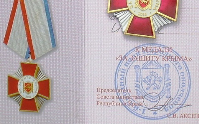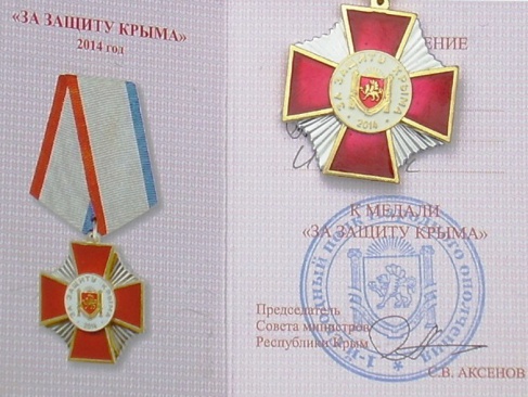 Керченский партиец получил медаль "За защиту Крыма"