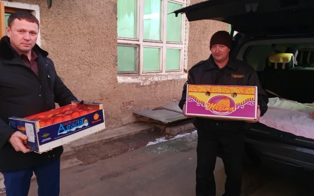 А член Совета Кировского регионального отделения "РОДИНЫ", депутат Вятскополянской городской Думы Александр Марголин по традиции лично поздравил воспитанников детского дома из г. Сосновка, которым достались самые сладкие мандарины.