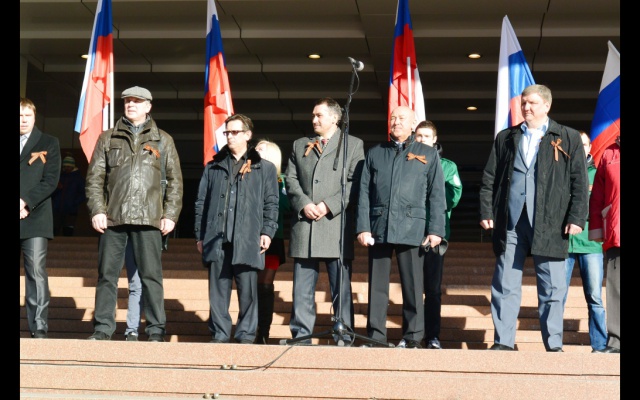 От имени Красноярских региональных отделений партии "РОДИНА" и Добровольческого движения особого назначения (ДОН) в поддержку армии, флота и оборонно-промышленного комплекса к участникам митинга обратился председатель отделений Вячеслав Александров. Зачитав поздравление вице-премьера Дмитрия Рогозина в связи с результатами референдума, он сообщил о том, что депутат Государственной Думы Алексей Журавлёв выдвинул предложение сделать день референдума в Крыму – российским государственным праздником. И назвать его Днём народного единства. Как день воссоединения России и Крымской Руси.